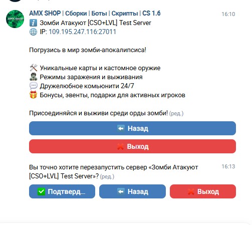 - Перезапуск сервера с подтверждением