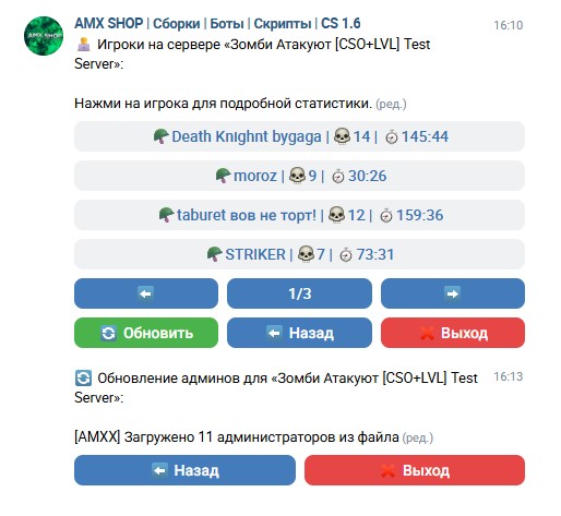 Актуальный VK Бот Next для администрирования серверов CS 1.6 прямо из беседы VK: онлайн, игроки, статистика, бан/кик, смена карты, рестарт, обновление админов и модульные дополнения.