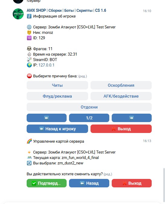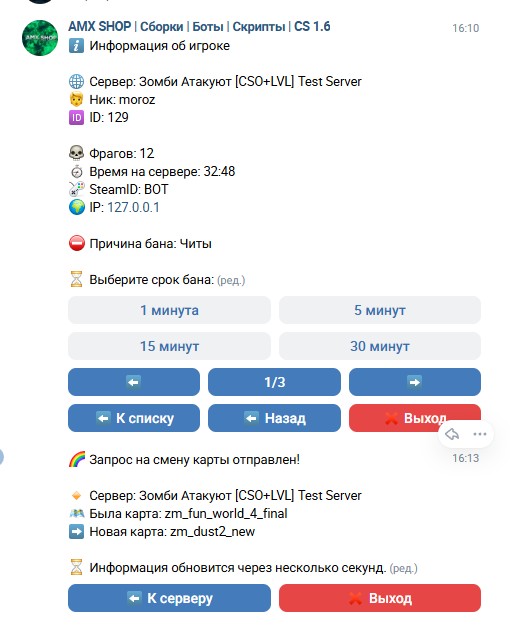 Администрирование серверов CS 1.6 из VK