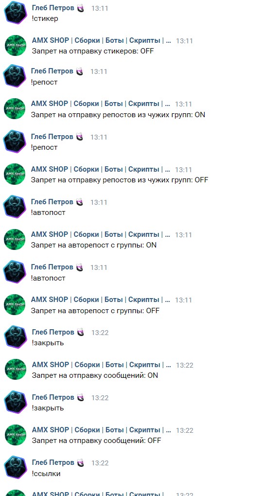 - - Команды выполняются как по ссылке на человека, так и в ответ на его сообщение
